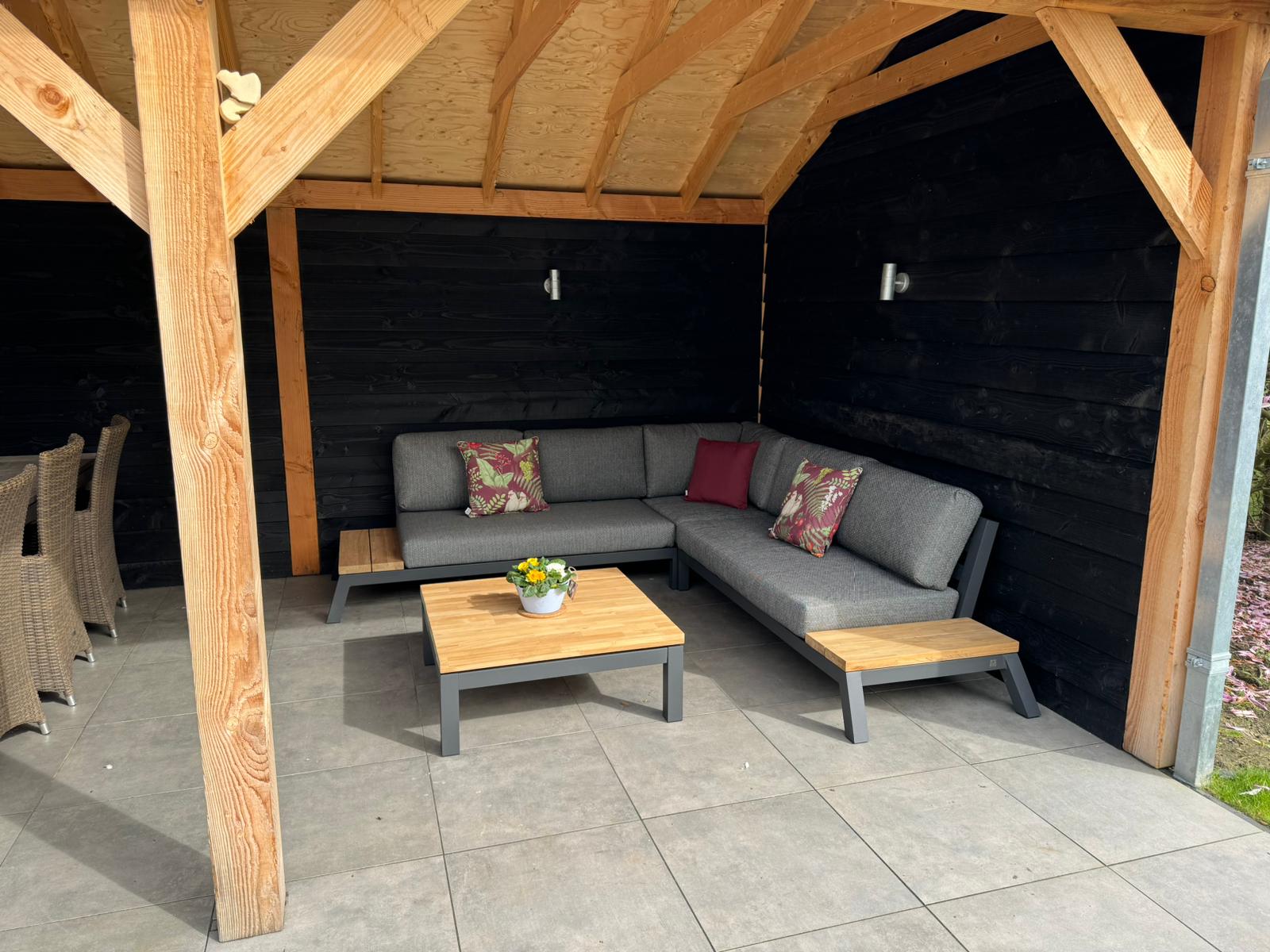 Vandaag nemen we een kijkje in de tuin van รฉรฉn van onze tevreden klanten. We hebben deze foto mogen ontvangen van de Emphire set die straalt in de overkapping. Deze gloednieuwe set past perfect bij de kleuren van de overkapping.
