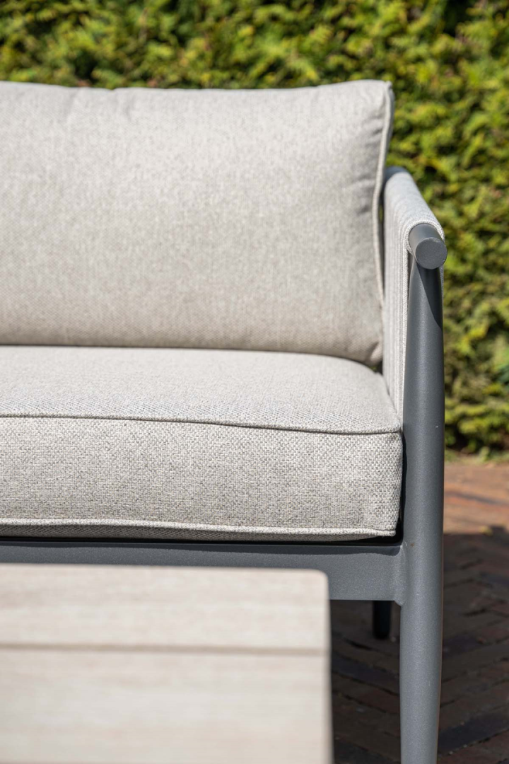 Ontdek de ultieme combinatie van comfort en stijl met de Aloha stoel-bank loungeset van Garden Impressions. Deze elegante set, uitgevoerd in een moderne grijze kleur met lichtgrijze kussens, biedt een verfijnde uitstraling die perfect past in elke buitenruimte.