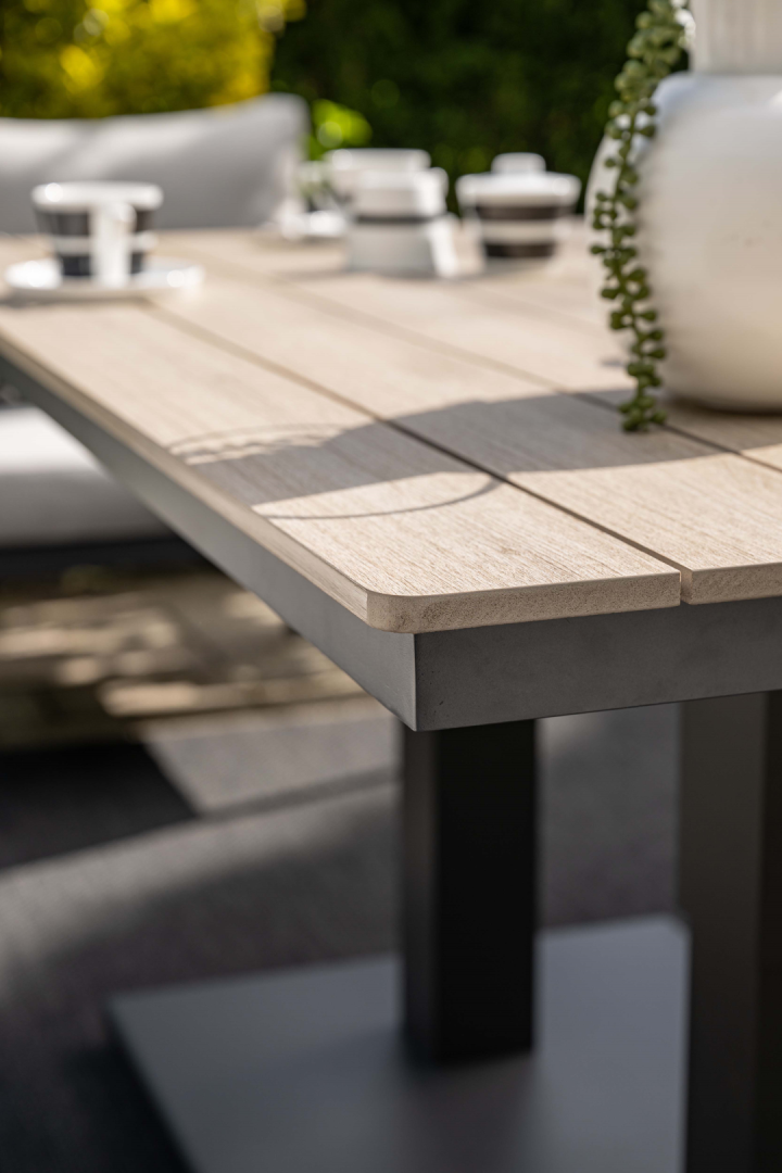 Ontdek de ultieme combinatie van stijl en functionaliteit met de Loungetafel verstelbaar Cyprus. Met een royale afmeting van 150×87 cm biedt deze tafel voldoende ruimte voor al uw buitenactiviteiten, of het nu gaat om een ontspannen ontbijt in de ochtendzon of een gezellige borrelavond met vrienden. Dankzij het slimme verstelbare ontwerp kunt u eenvoudig de hoogte aanpassen, zodat de tafel perfect aansluit bij elke gelegenheid.