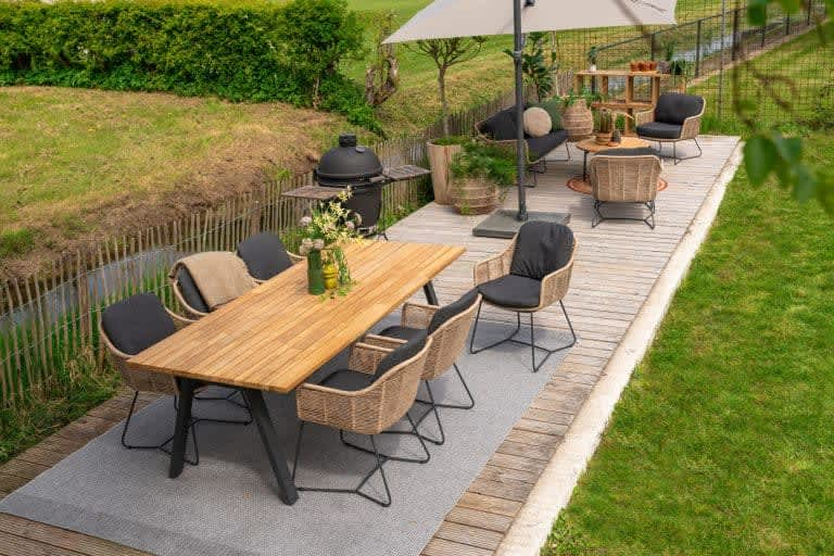 Ontdek de elegante Dining stoel Belmond in de kleur Natural, een perfecte aanvulling voor elke buitenruimte. Met een afmeting van 61 cm lengte, 70 cm breedte en 82 cm hoogte, biedt deze stoel een comfortabele en stijlvolle zitervaring. Het hoogwaardige RVS-frame zorgt voor duurzaamheid en een moderne uitstraling, terwijl de antracietkleurige kussens een verfijnde touch toevoegen. Deze stoel van het merk Taste 4SO is ideaal voor gezellige diners in de open lucht, waar comfort en design hand in hand gaan. Voeg een vleugje luxe toe aan uw tuin of terras met de Belmond dining stoel en geniet van onvergetelijke momenten in stijl.