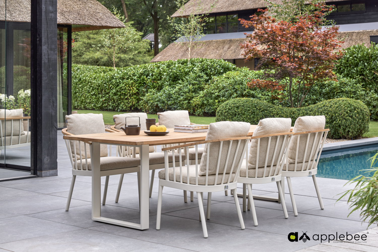 De Dining stoel Condor in de kleur Oyster is een prachtige toevoeging aan elke eetkamer of buitenruimte. Deze stoel, ontworpen door het gerenommeerde merk Apple Bee, combineert stijl en functionaliteit op een unieke manier. Met zijn elegante beige tint en hoogwaardige aluminium frame, biedt de Condor stoel niet alleen een verfijnde uitstraling, maar ook duurzaamheid en comfort. De stoel is perfect voor zowel binnen- als buitengebruik, waardoor je veelzijdigheid hebt in het creëren van een samenhangende en stijlvolle omgeving.
