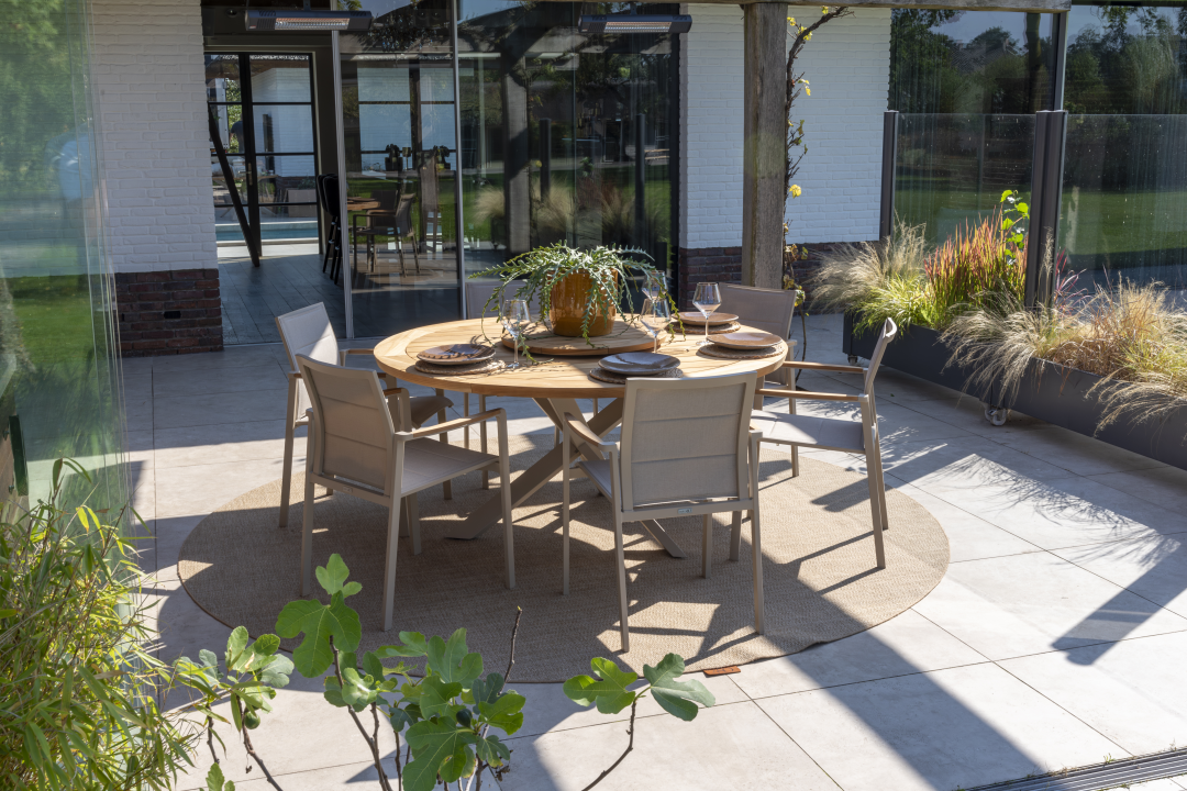 Ontdek de perfecte combinatie van stijl en comfort met de Dining stoel Cortina in de elegante kleur Latte. Deze stoel, ontworpen door het gerenommeerde merk Taste 4SO, is een must-have voor elke buitenruimte. Met een lengte van 58 cm, een breedte van 61 cm en een hoogte van 86 cm, biedt deze stoel een comfortabele zitervaring voor één persoon. Het gebruik van hoogwaardig aluminium en teakhout zorgt niet alleen voor duurzaamheid, maar ook voor een moderne uitstraling die elke tuin of terras naar een hoger niveau tilt. De stoel is licht van gewicht, waardoor hij gemakkelijk te verplaatsen is. Voeg een vleugje luxe toe aan uw buitenomgeving met de Dining stoel Cortina en geniet van onvergetelijke momenten in stijl.