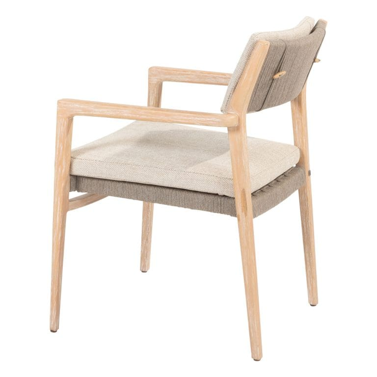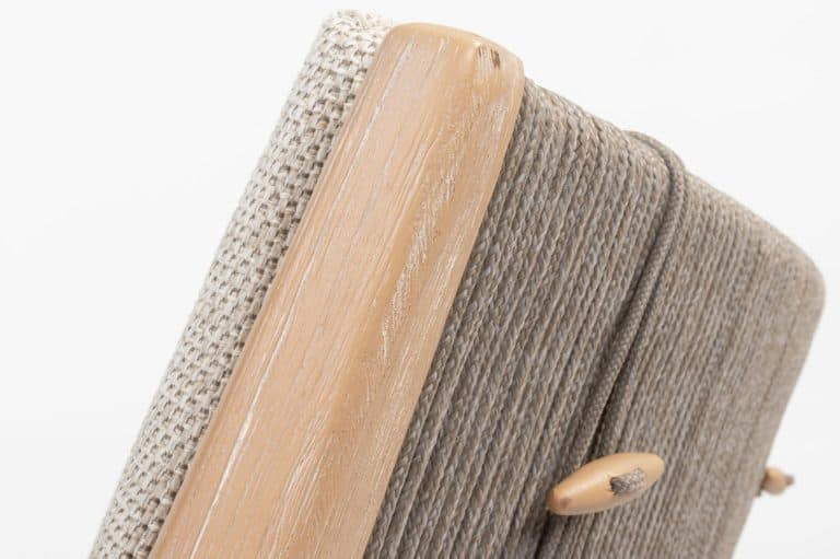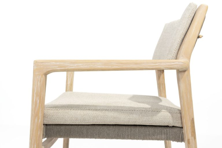 Gemaakt van hoogwaardig teakhout en duurzaam rope, straalt de Dining stoel Julia luxe en duurzaamheid uit. De natuurlijke uitstraling van het teakhout wordt prachtig gecomplementeerd door de taupe kussens, die niet alleen voor extra comfort zorgen, maar ook een verfijnde touch aan het geheel geven.