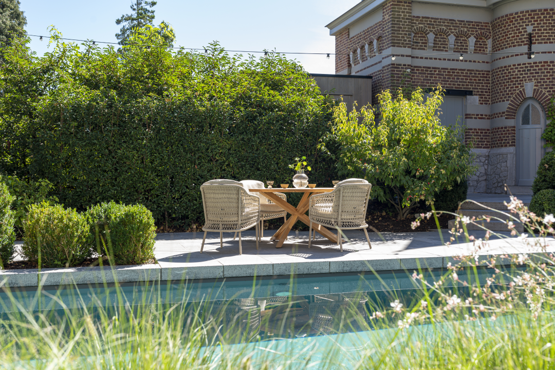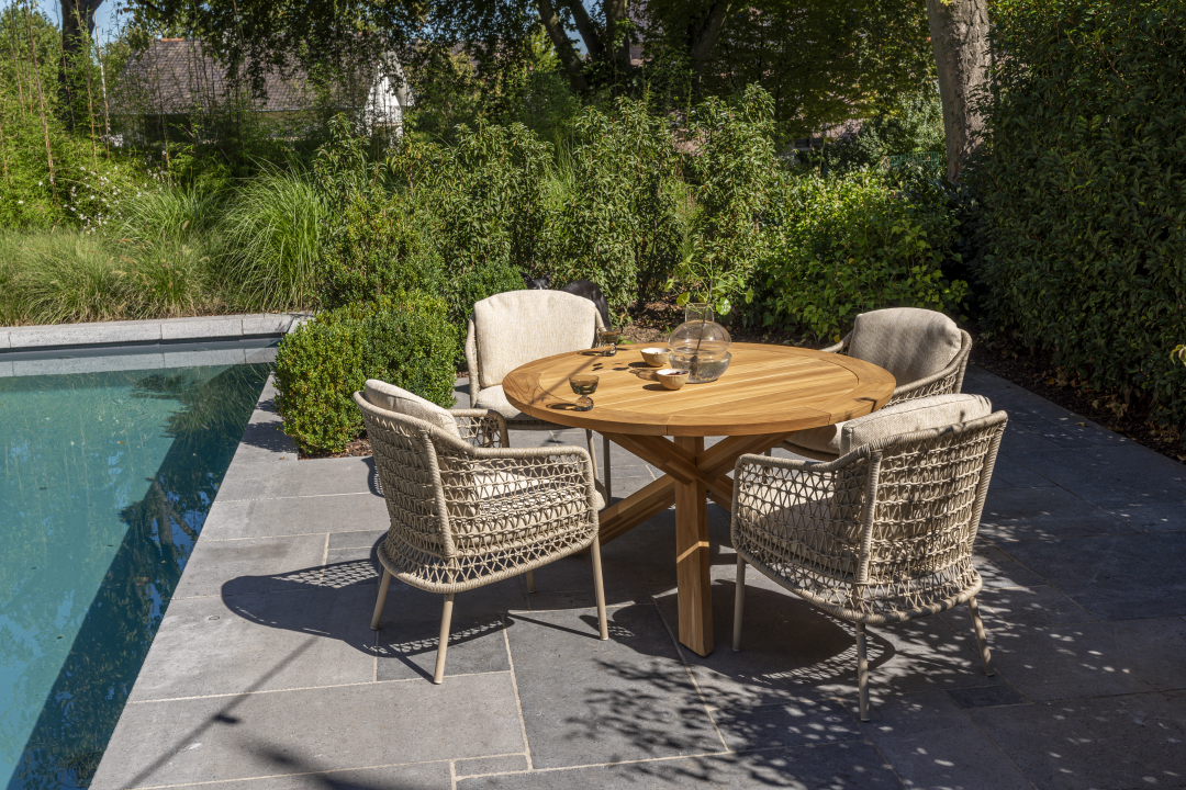 Ontdek de elegante en comfortabele Dining stoel Puccini, een perfecte aanvulling voor uw buitenruimte. Met een verfijnde Latte-kleur straalt deze stoel een tijdloze charme uit die naadloos in elke tuin of terras past. De stoel is vervaardigd uit hoogwaardig RVS en duurzaam rope, wat zorgt voor een robuuste constructie en een moderne uitstraling. De bijpassende Latte-kleurige kussens bieden niet alleen een stijlvolle look, maar ook ultiem zitcomfort voor lange avonden aan tafel.