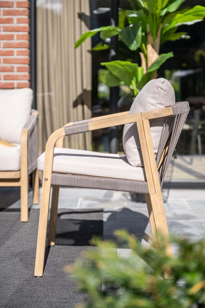 De Dining stoel Santos is vervaardigd uit duurzaam materiaal, wat zorgt voor een lange levensduur en weerbestendigheid. De kleur van de stoel straalt een tijdloze elegantie uit, terwijl de bijpassende kussens een vleugje luxe toevoegen en zorgen voor extra zitcomfort. Of u nu een intiem diner voor twee organiseert of een gezellige bijeenkomst met vrienden, deze stoel biedt de perfecte zitoplossing.