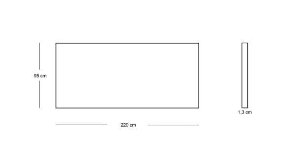 | Afmeting tafel | Lengte: 220 cm Breedte: 95 cm Hoogte: 74 cm |