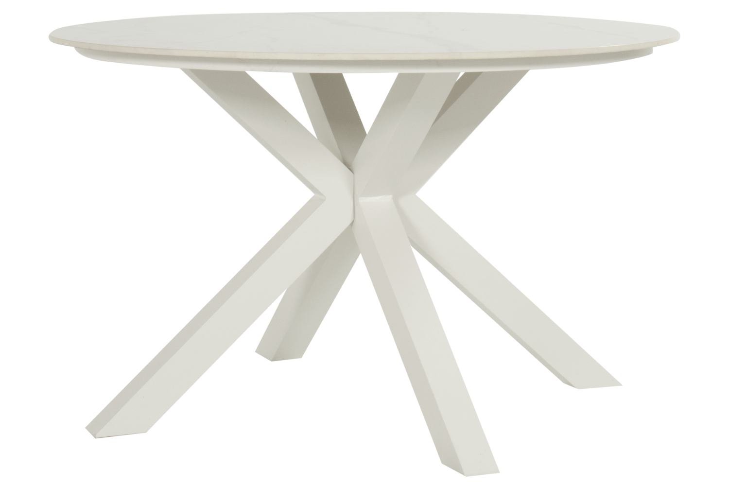 Met een diameter van 120 cm biedt de Xander White voldoende ruimte voor al uw eetbenodigdheden, terwijl het slanke ontwerp ervoor zorgt dat het niet te veel ruimte inneemt. De tafel is vervaardigd uit hoogwaardige materialen zoals aluminium en keramiek, die niet alleen zorgen voor een moderne look, maar ook bestand zijn tegen diverse weersomstandigheden. Het witte kleurenschema voegt een frisse en verfijnde touch toe aan uw tuin of terras, waardoor het een tijdloze keuze is voor elke buiteninrichting.