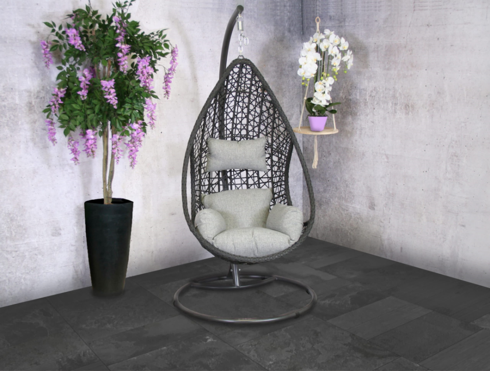 Ontsnap naar een wereld van ultieme ontspanning met de Hangstoel Mona Black van SenSline. Deze elegante hangstoel, uitgevoerd in een stijlvolle antracietkleur, is de perfecte aanvulling voor elke tuin of terras. Met een royale afmeting van 90 cm in lengte en breedte, en een hoogte van 150 cm, biedt deze stoel een comfortabele en ruime zitervaring.