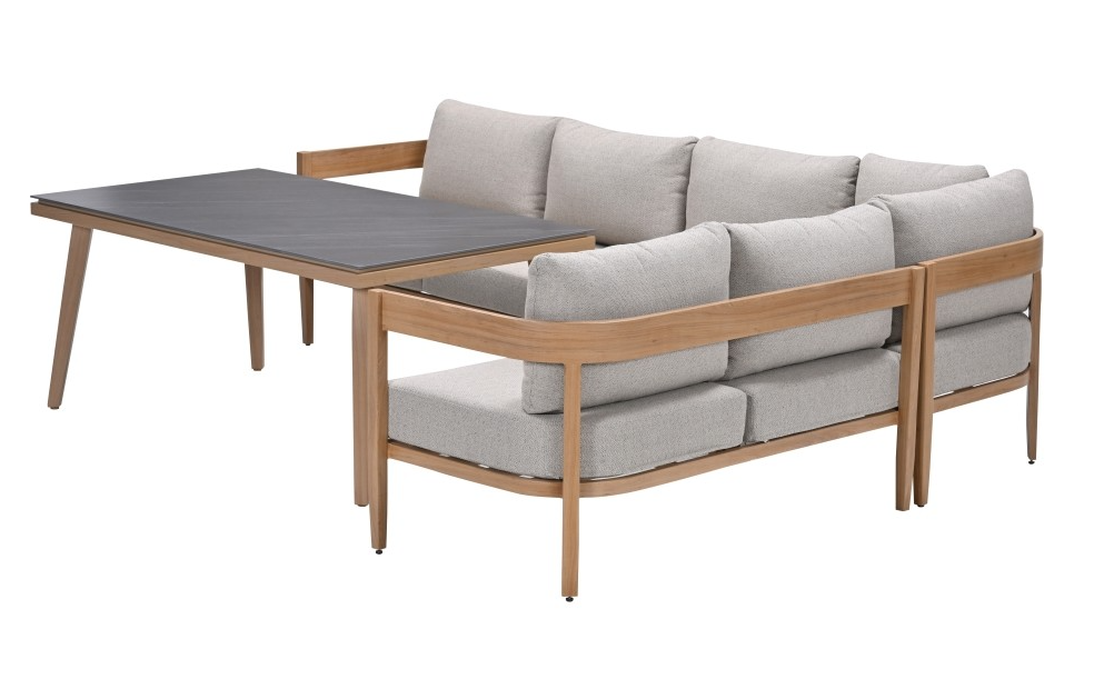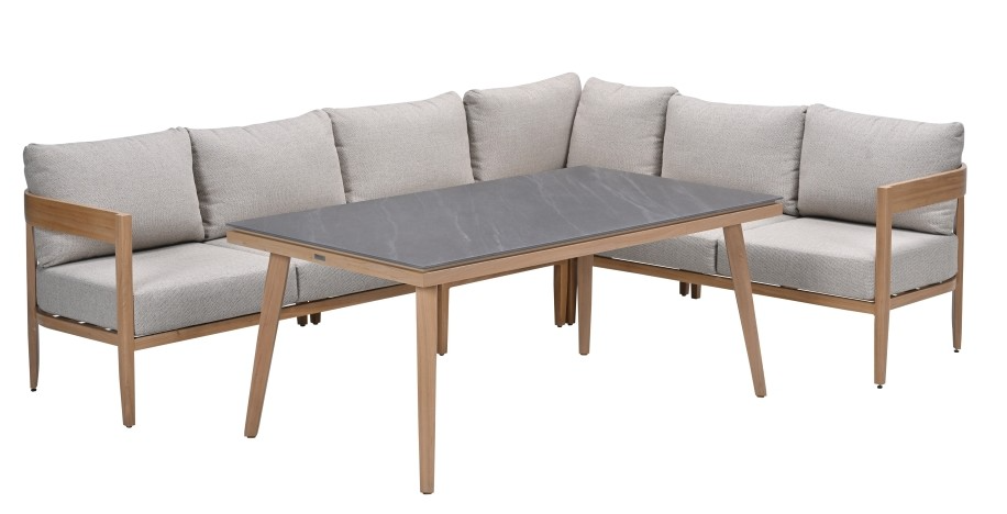 Ontdek de ultieme combinatie van stijl en comfort met de Lounge-diningset Carrara 5-delig van Garden Impressions. Deze elegante set, uitgevoerd in een warme bruine kleur met taupekleurige kussens, biedt een perfecte balans tussen luxe en functionaliteit. De hoekbank, met een royale lengte van 275 cm en breedte van 209 cm, nodigt uit tot ontspannen loungen en gezellig samenzijn. De bijpassende tafel, met een lengte van 160 cm en breedte van 90 cm, is ideaal voor zowel intieme diners als grotere bijeenkomsten. Gemaakt van hoogwaardig aluminium, garandeert deze set duurzaamheid en weerbestendigheid, zodat je jarenlang kunt genieten van onvergetelijke momenten in je buitenruimte. Met plaats voor vijf personen is de Carrara set de perfecte aanvulling voor elke tuin of terras, waar stijl en comfort samenkomen.