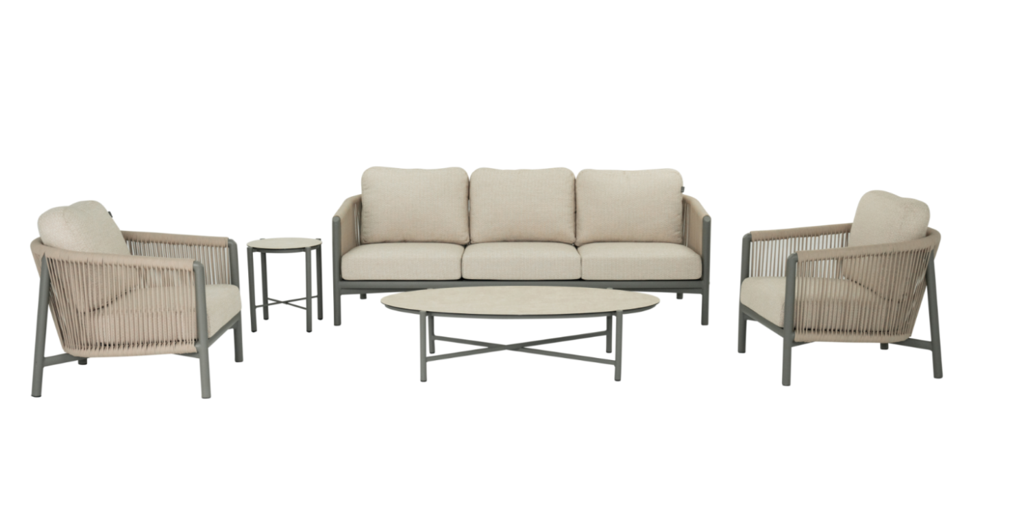 De constructie van de Loungebank Bora Bora is gemaakt van hoogwaardig aluminium in een elegante taupe kleur. Dit materiaal is niet alleen duurzaam en weerbestendig, maar ook licht van gewicht, waardoor de bank eenvoudig te verplaatsen is. De kussens zijn bekleed met Apple Bee’s exclusieve stof in een zachte beige tint, die niet alleen comfortabel is, maar ook bestand tegen de elementen. Deze combinatie van materialen zorgt ervoor dat de bank zowel functioneel als esthetisch aantrekkelijk is.
