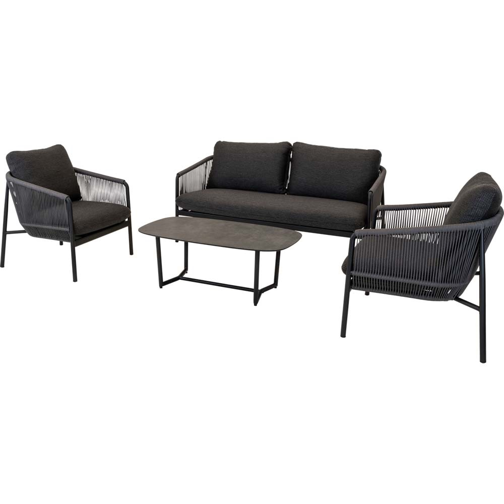 Ontdek de ultieme combinatie van stijl en comfort met de Osaka loungeset in elegant zwart. Deze set is ontworpen om elke buitenruimte te transformeren in een luxe ontspanningsoase. De set bestaat uit een ruime bank, een comfortabele hoekbank, een stijlvolle stoel en een praktische tafel, allemaal perfect op elkaar afgestemd voor een harmonieuze uitstraling.