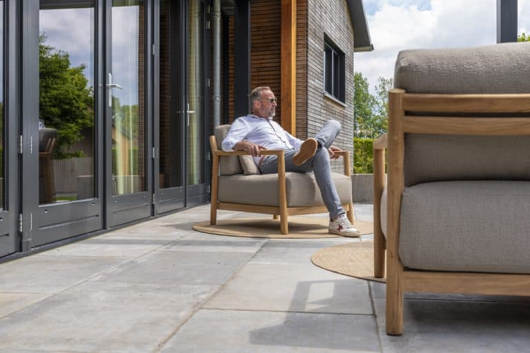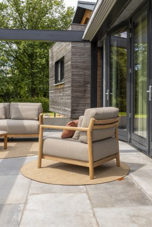 De Loungestoel Marie is vervaardigd uit duurzaam aluminium en teakhout, wat niet alleen zorgt voor een stevige constructie, maar ook een elegante uitstraling geeft. De warme bruine kleur van het frame harmonieert prachtig met de taupe kussens, die een uitnodigende en luxe sfeer creëren. De kussens zijn ontworpen voor optimaal comfort, zodat u urenlang kunt genieten van uw tuin of terras.