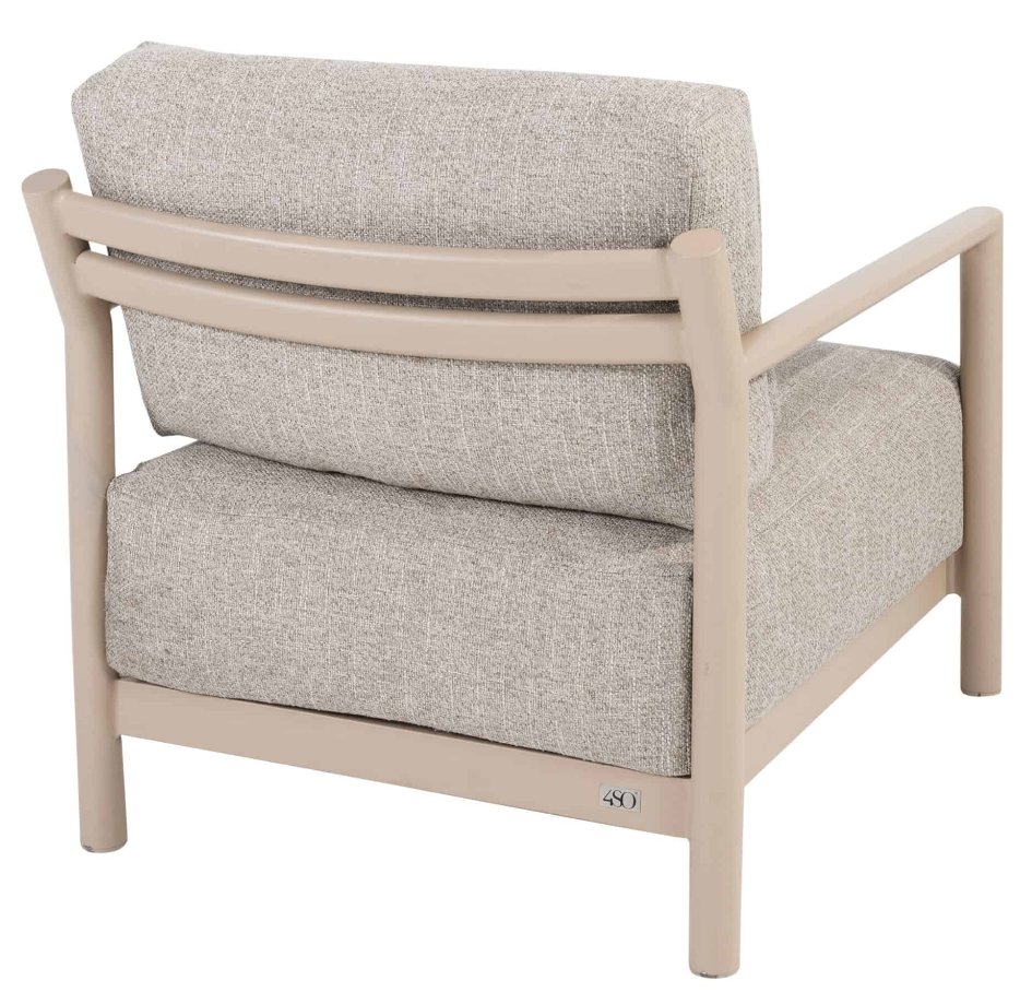 Met een lengte van 77 cm, een breedte van 96 cm en een hoogte van 73 cm biedt de Loungestoel Mykonos voldoende ruimte om heerlijk achterover te leunen en te genieten van de buitenlucht. De stoel is vervaardigd uit duurzaam aluminium, wat niet alleen zorgt voor een stevige constructie, maar ook voor een lichtgewicht ontwerp dat gemakkelijk te verplaatsen is. De Latte-kleur van het aluminium frame voegt een vleugje verfijning toe, terwijl de comfortabele kussens in een zachte beige tint van 4 Seasons Outdoor een uitnodigende zitervaring garanderen.