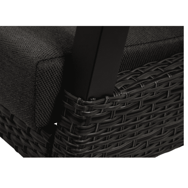 De kussens, die perfect passen bij de antracietkleur van de stoel, zijn ontworpen voor maximaal comfort en stijl. Ze bieden een zachte ondersteuning en zijn eenvoudig te onderhouden, zodat u altijd kunt genieten van een frisse en uitnodigende zitplek.