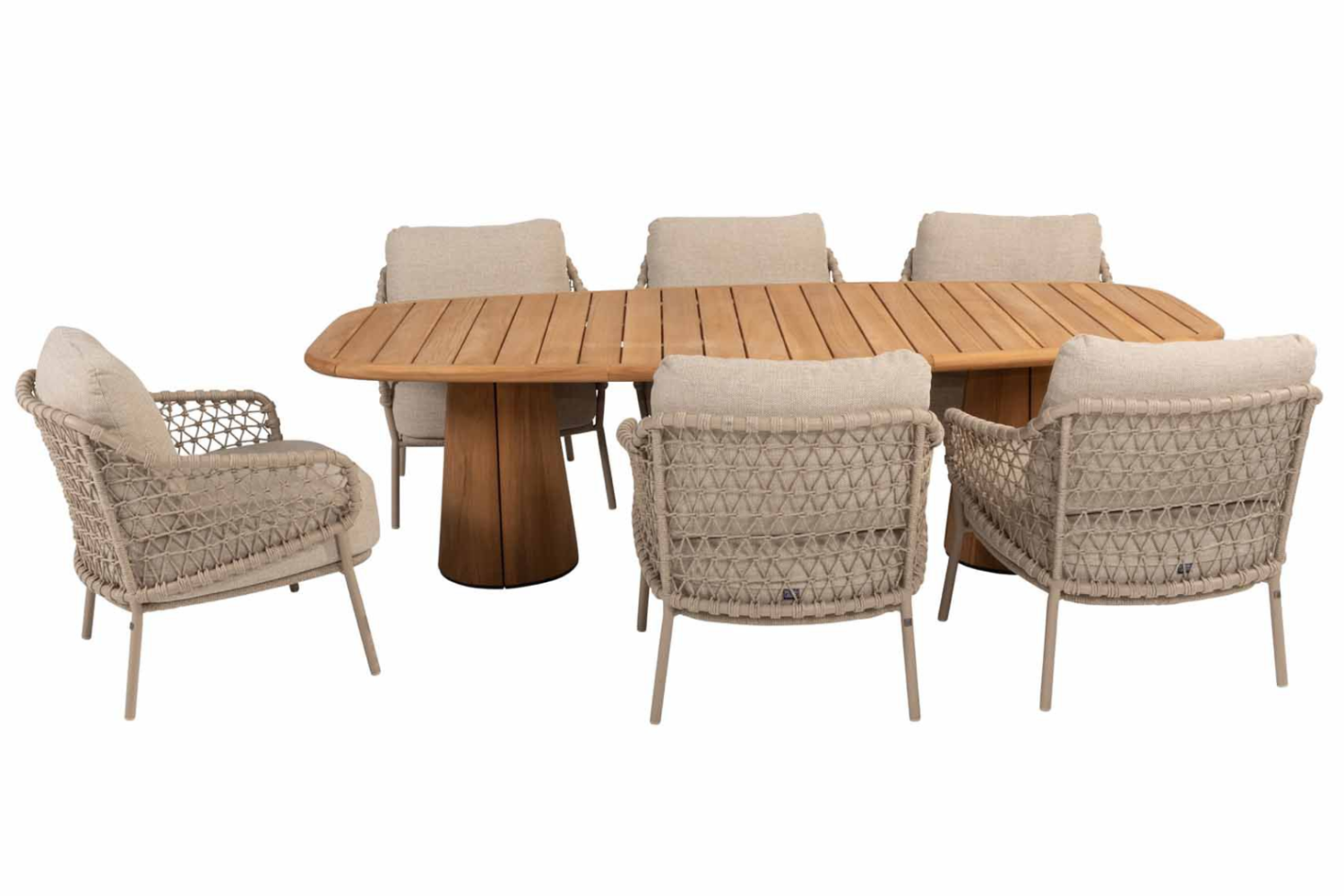 Low dining tafel Capri barrel-vorm 240 cm + Low dining stoel Sardinia