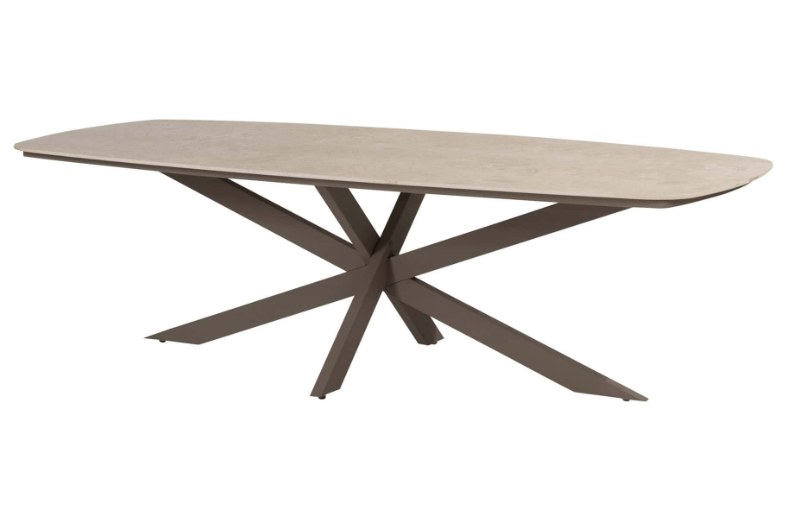 Nevada keramisch tafelblad barrel-vorm 250 x 105 cm. voor terre onderstel