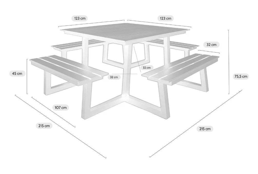 | Afmeting | Lengte: 215 cm Breedte: 215 cm Hoogte: 75cm |