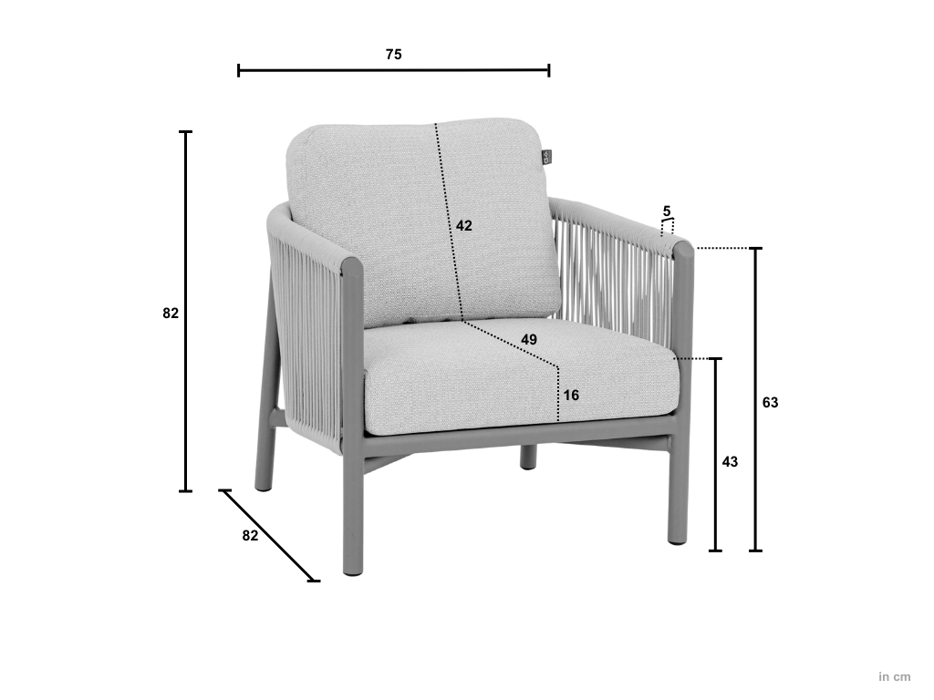 | Afmeting stoel | Lengte: 73 cm Breedte: 81 cm Hoogte: 67 cm |