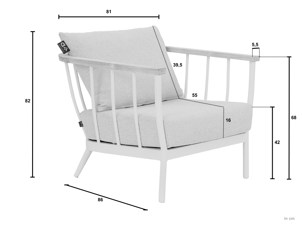 | Afmeting stoel | Lengte: 86 cm Breedte: 81 cm Hoogte: 64 cm |