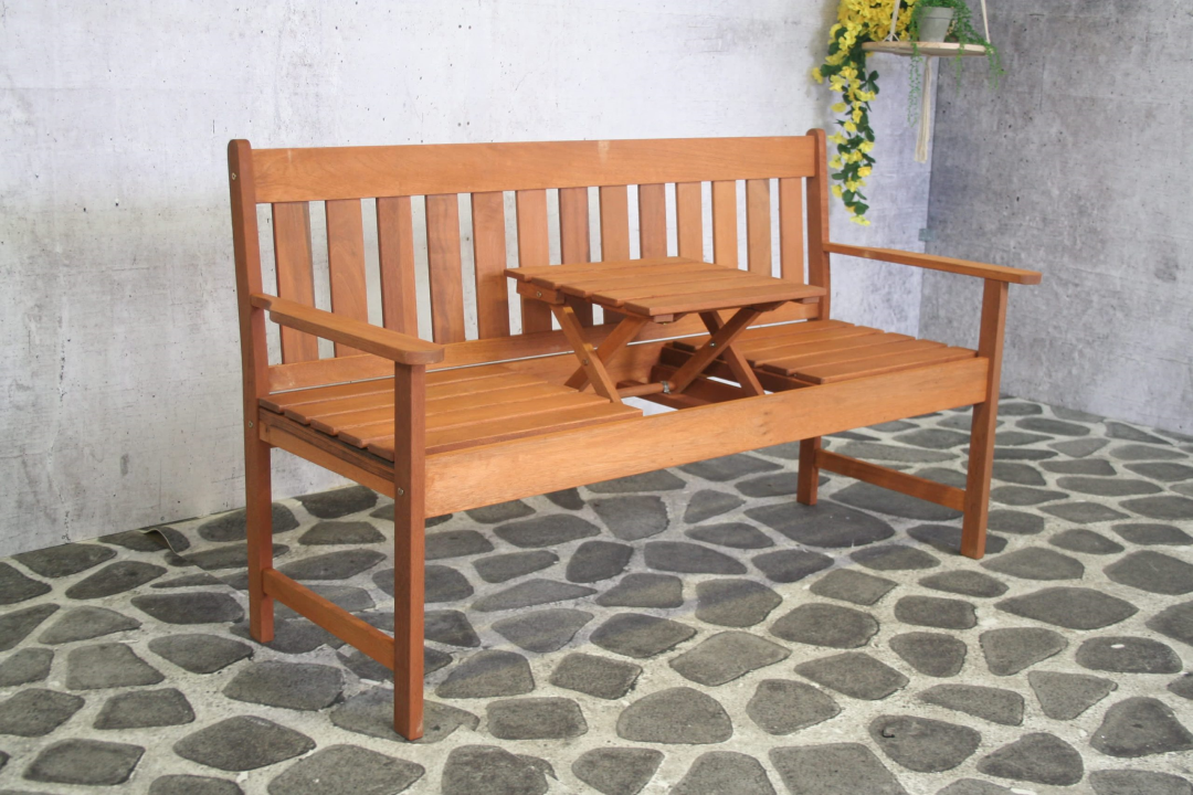 Een uniek kenmerk van de Tuinbank Vegas is de uitklapbare tafel, ideaal voor het neerzetten van drankjes, boeken of andere benodigdheden tijdens een ontspannen middag in de tuin. De bank is ontworpen met oog voor detail en biedt een comfortabele zitervaring, perfect voor lange zomerdagen of gezellige avonden buiten.