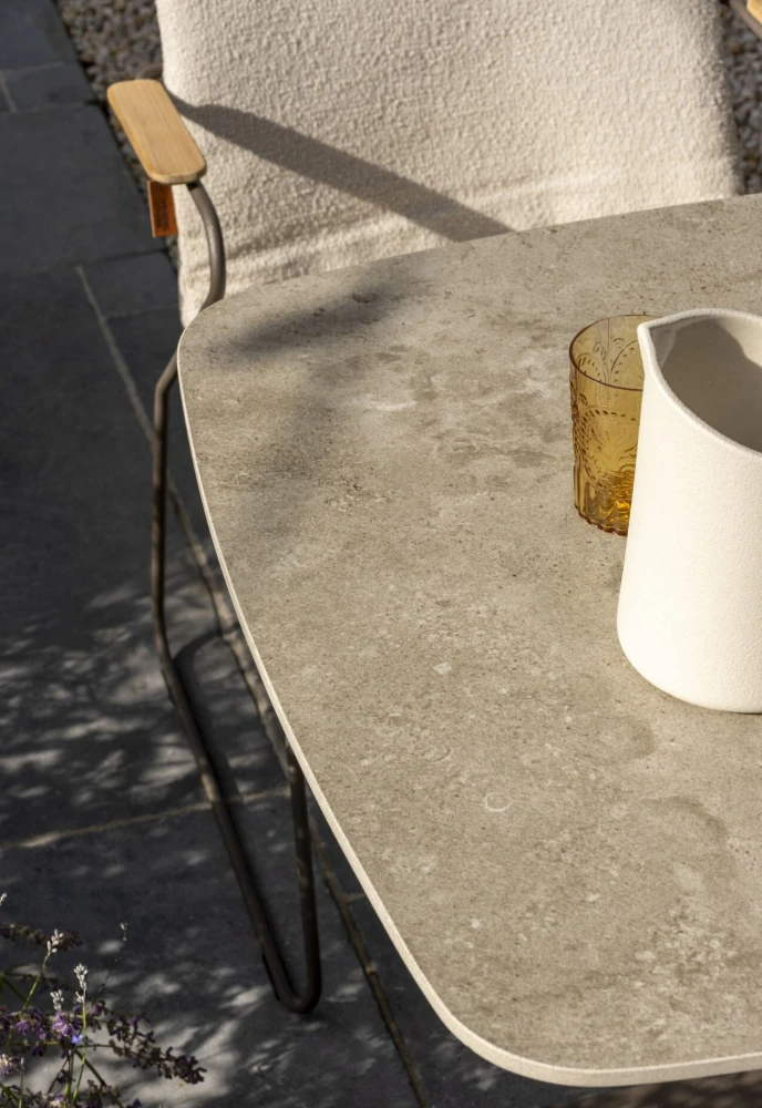 Gemaakt van hoogwaardige materialen zoals aluminium en keramiek, biedt de Vermont tafel duurzaamheid en weerbestendigheid. Het aluminium frame zorgt voor een stevige constructie, terwijl het keramische tafelblad een luxe uitstraling geeft en gemakkelijk te onderhouden is. Deze combinatie van materialen maakt de tafel niet alleen robuust, maar ook licht van gewicht, zodat u hem eenvoudig kunt verplaatsen indien nodig.